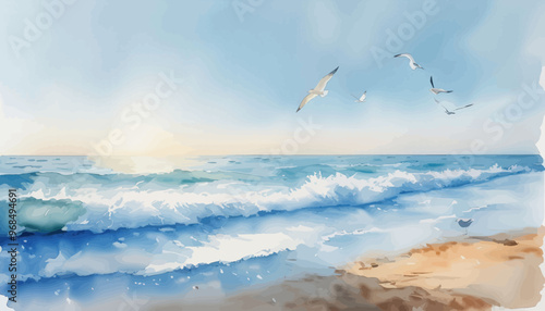 Birds Soaring Over the Ocean Waves