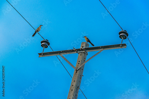 Birds Standing at Telephone Cables