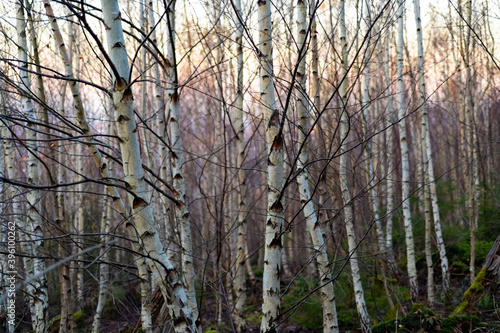 Birke Betula Stämme RInde Wald jung Pionierpflanze Schonung schwarz weiß boreal Laubwald Pflanzung Hintergrund Natur Gehölz Holz Borke Lentizellen Äste Zweige Herbst WInter Jahreszeit Saft Heilkunde