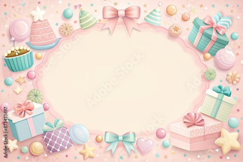 Birthday banner. Frame drawn watercolor balloons symbols of birthday party cake gifts. Design holiday greeting card and invitation of birthday and holidays background