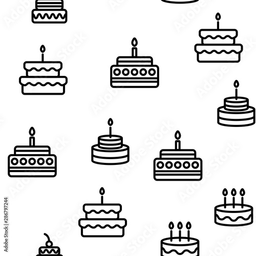 Birthday Cake Seamless Pattern Vector Contour Illustration