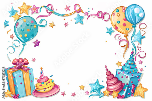 Birthday Card with Balloon and Stars, generated ai