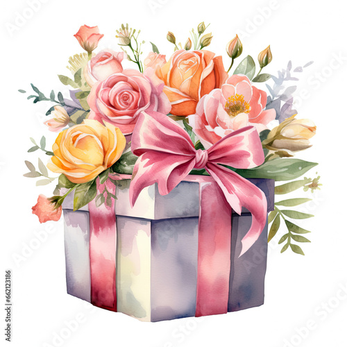 Birthday gift box and rose Illustration, Generative Ai
