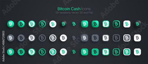 Bitcoin Cash BTH Crypto Currency Modern 3D And Flat Icons Set Vector Isolated On Dark Back. Blockchain Technology Cryptocurrency Coins Logo In Different Styles For Financial Exchange Digital Business