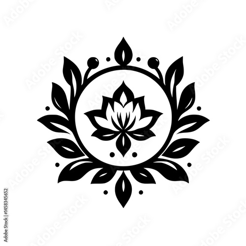 Black & White Lotus Flower Mandala Design - Vector Icon on White