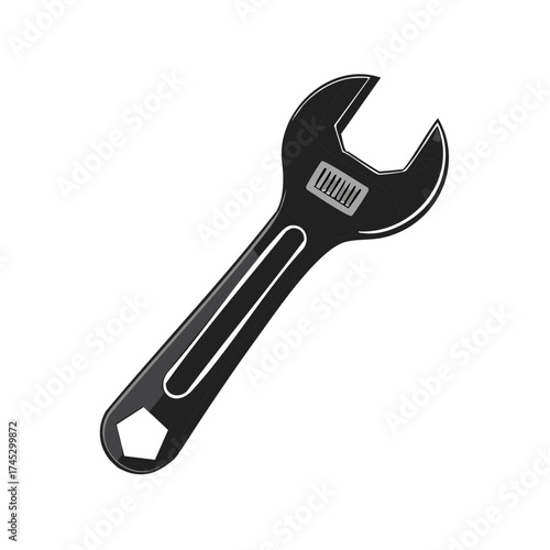 Black adjustable spanner tool vector icon for hardware, mechanics, and repair
