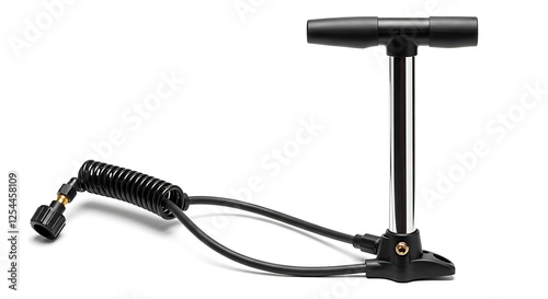 Black Air Pump with Hose Isolated on White Background