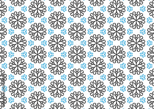 Black and blue drawing line of flower repeated pattern on white background, design for fabric printing