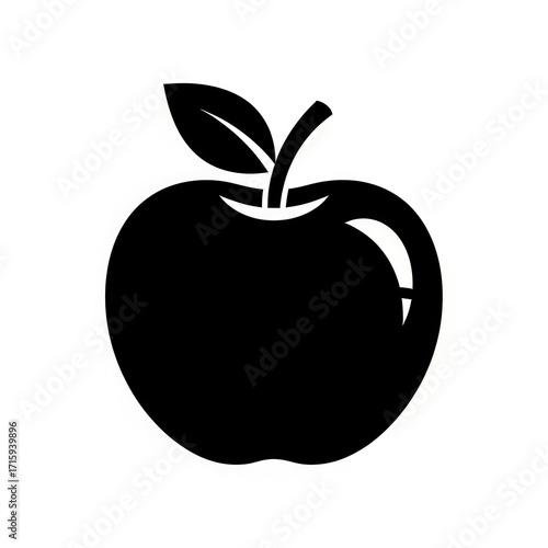 Black and white apple icon with leaf.