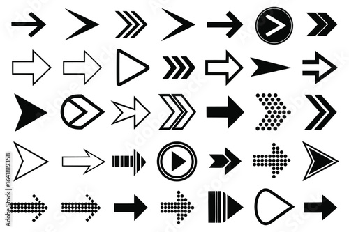 Black and White Arrow Icon Set – Vector Direction Symbols