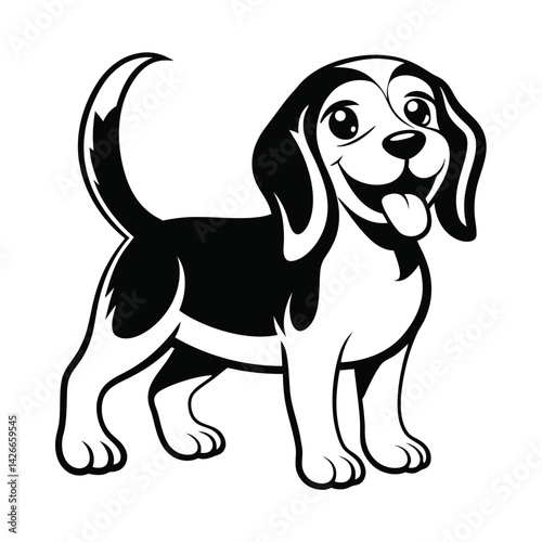 Black and White Beagle Illustration, Happy Cartoon Dog, Puppy Standing, Isolated Animal