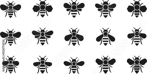 Black and White Bee Icons Pattern