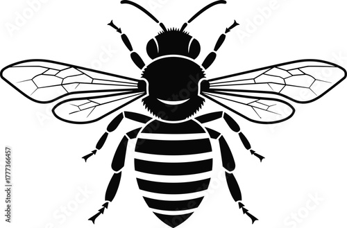 Black and white bee illustration, detailed insect drawing, nature sketch, honeybee artwork,