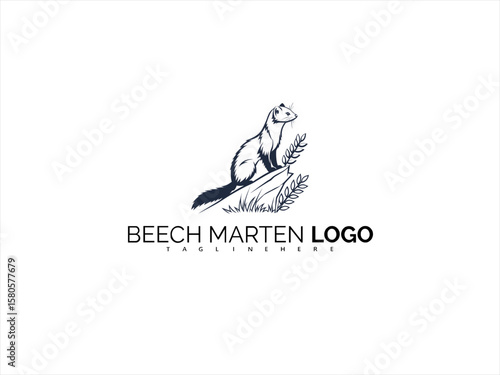Black and White Beech Marten Logo in Elegant Line Art. Designed for Outdoor Clothing Brands, Wildlife Packaging Concepts, and Nature-Inspired Business Logos.