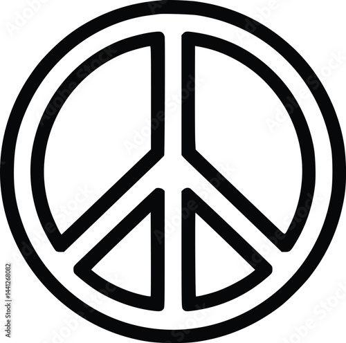 Black and white bold vector of a world peace symbol, isolated on white background.