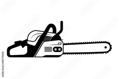 Black and White Chainsaw Icon Illustration for Woodworking and Forestry Concepts and Detailed Black and White Isolated Chainsaw Image