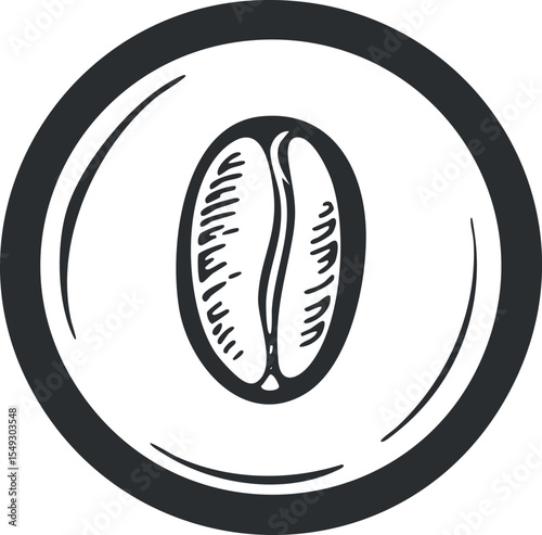 Black and white coffee bean icon in a circular frame, simple vector illustration
