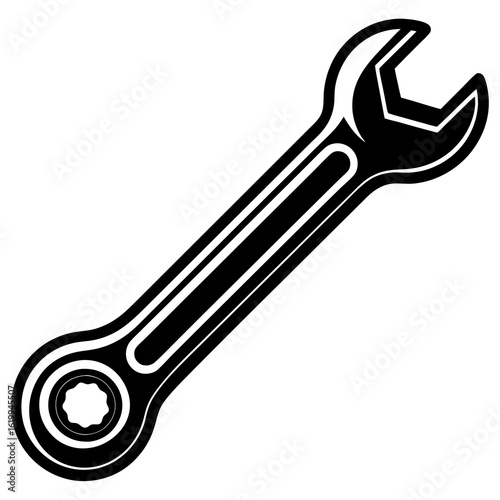 Black and White Combination Wrench Icon.