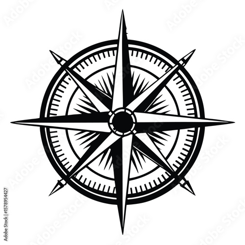 Black and white compass rose navigation direction