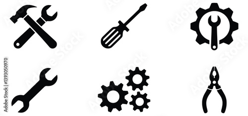 Black And White Construction Tools Icon Set Vector Illustration For Engineering
