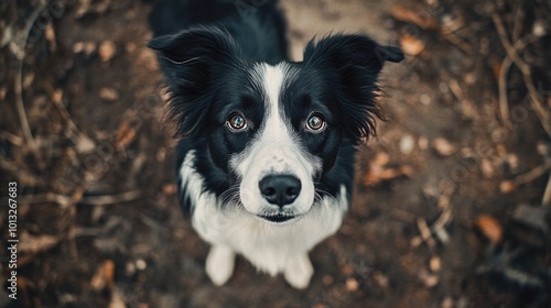Black and White Dog Looking Up
