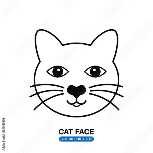 Black and white drawing of a cat face on a white background