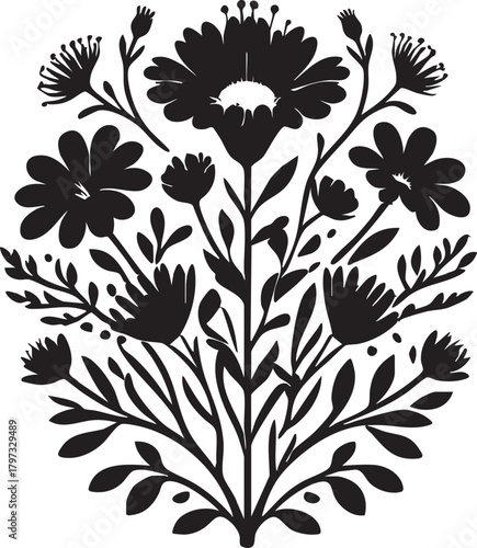 Black and white floral vector illustration: botanical flower design eps silhouette