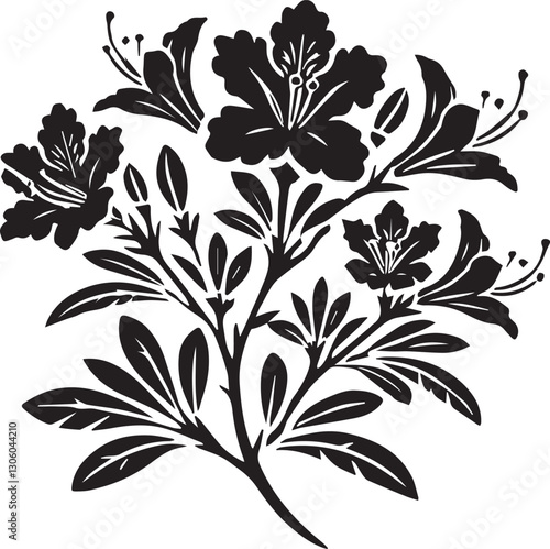 black and white flowers, Jasmine Flower Vector Illustration, Jasmine Flower silhouette vector icon black and white