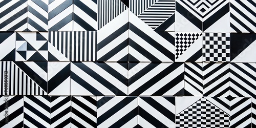 Black and white geometric wall pattern.