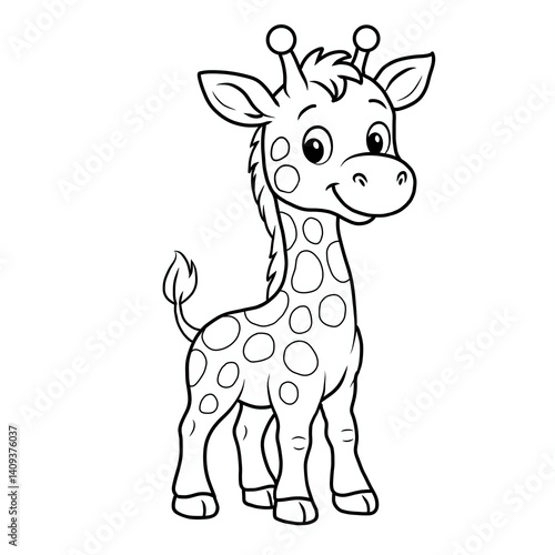 Black and White Giraffe Line Art Illustration for Kids Coloring Book