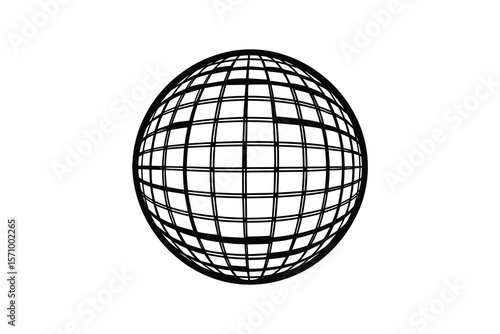Black and White Globe Grid Design on a White Background