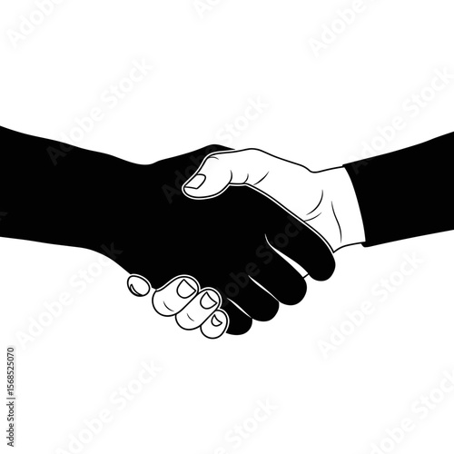 Black and white handshake vector illustration symbolizing unity and agreement