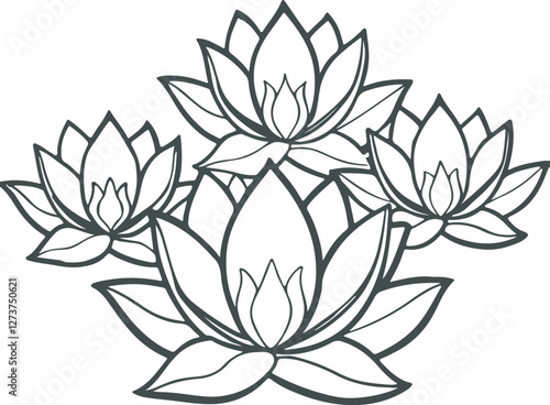 Black and white line art Silhouette water lily flowers vector doodle art in white background