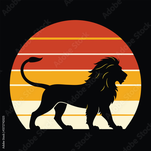 Black and white lion silhouette vector illustration with a running horse design