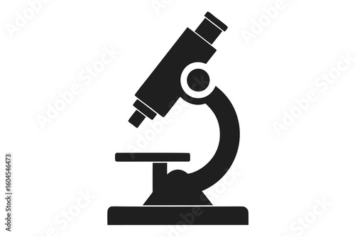 Black and white microscope graphic for science and research concepts perfect for educational materials or medical illustrations symbolizing scientific exploration