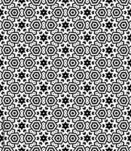 Black and white seamless abstract pattern. Background and backdrop. Grayscale ornamental design. Mosaic ornaments. Vector graphic illustration. EPS10.