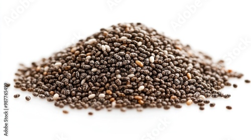 Black and White Speckled Chia Seeds on White Background Highlighting Tiny Size