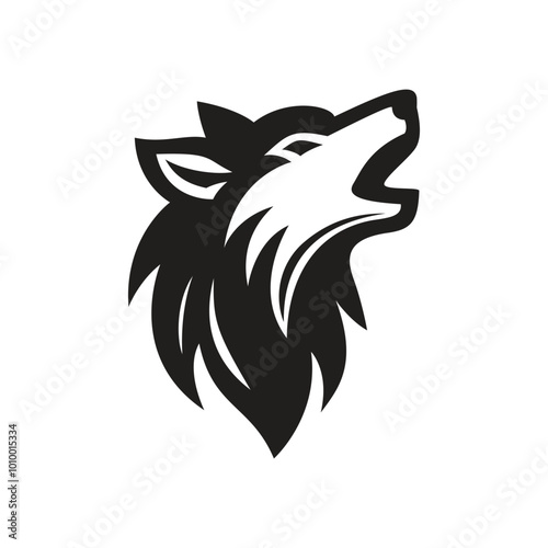 Black and White Stylized Wolf Head Howling Logo Design