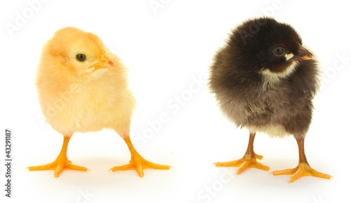 black and yellow little chickens isolated on the white