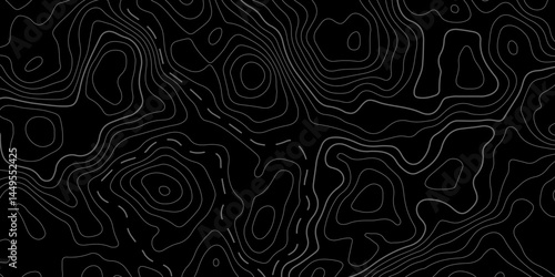 Black background topography contour map with black curve lines luxury topographic wavy pattern and geographic grid map patterns, topography line map. Vintage outdoors style