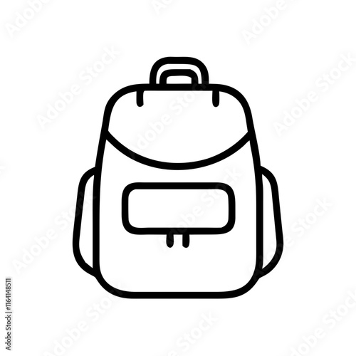 Black backpack icon in simple line art style.