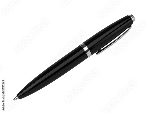Black Ballpoint Pen with Retractable Tip, Side View, Transparent Background PNG