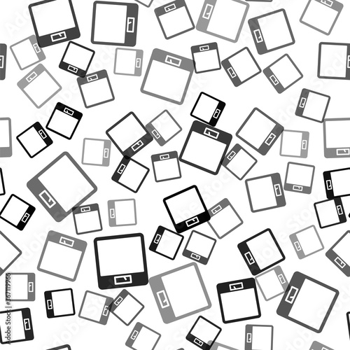 Black Bathroom scales icon isolated seamless pattern on white background. Weight measure Equipment. Weight Scale fitness sport concept. Vector Illustration.