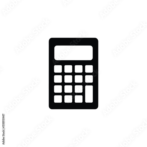 Black Calculator Icon with Display Screen, Square Buttons, and Rounded Edges on White Background