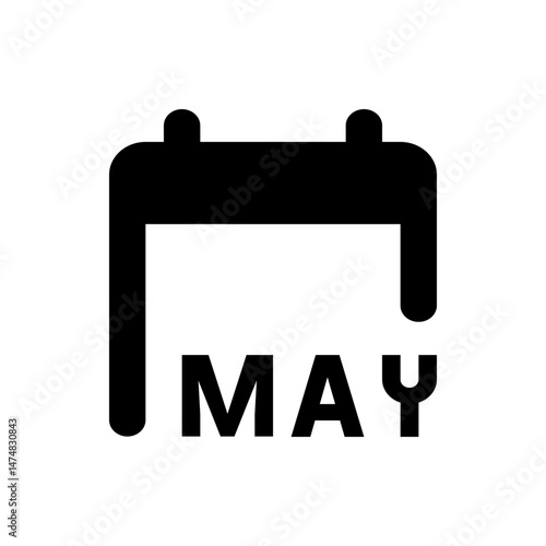 Black calendar icon displaying the month of may with a simple and clean design on a white background view
