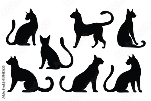 Black Cat Silhouette Set – Various Poses and Expressions Vector Collection