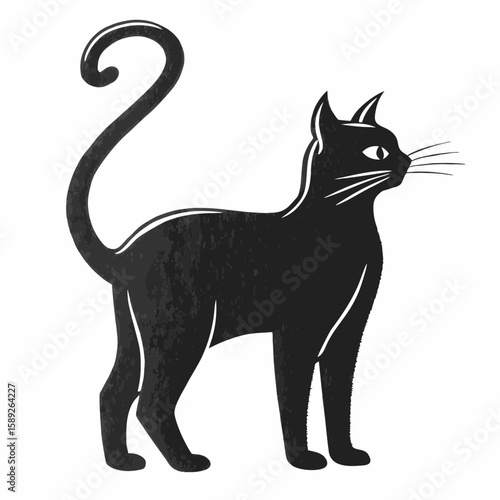 Black cat silhouette with textured fur on a white background animal