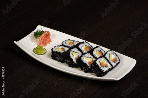 Black caviar sushi rolls set