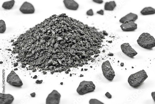 Black Coal Pile on White Background