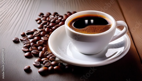 Black coffee in white cup, close up- 81030